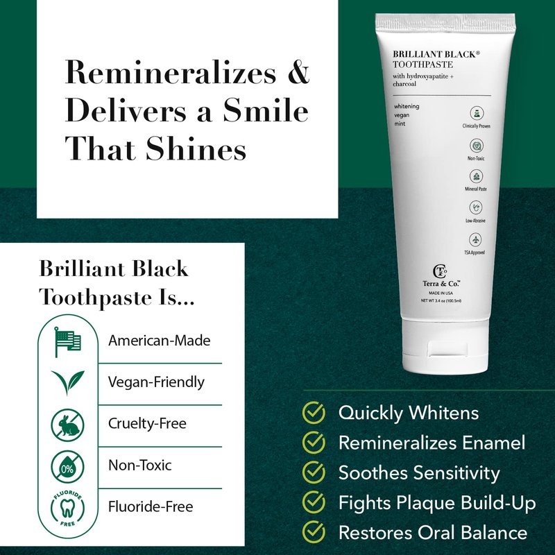 - Safe and Gentle Whitening: Brilliant Black is an advanced teeth-whitening toothpaste that has been third-party tested and backed by science to gently but effectively whiten teeth without damaging or striping enamel. Naturally lifts stains from coffee, wine, and berries. This sensitive toothpaste is great for sensitive teeth, mouth, and gums.