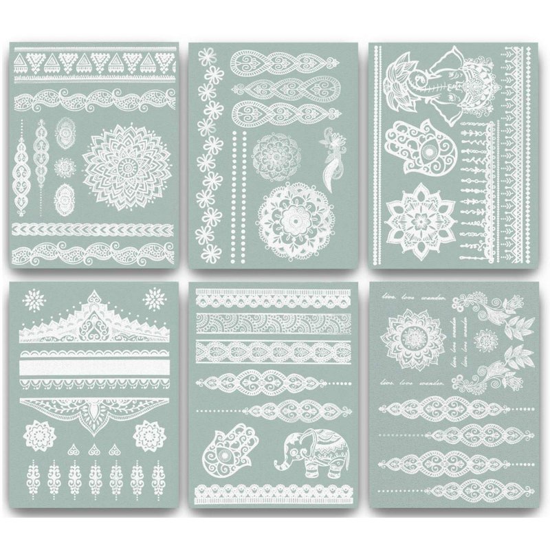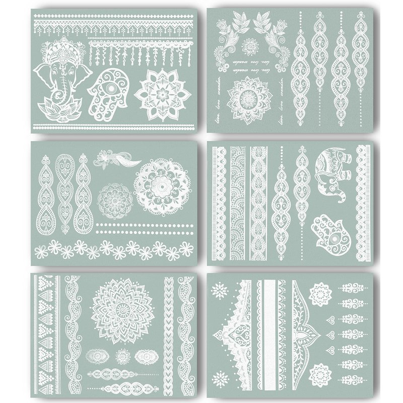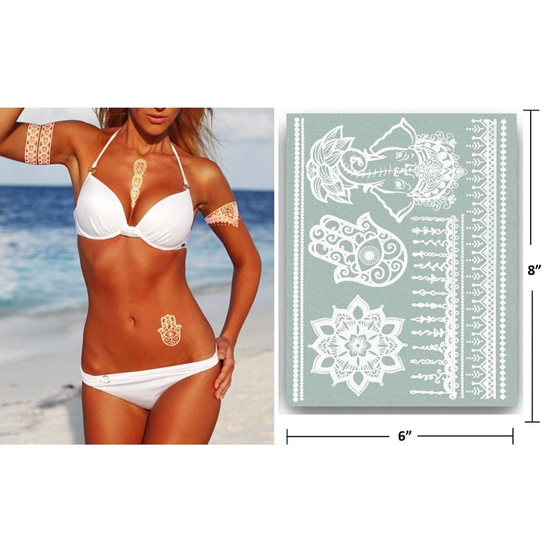 Terra Tattoos White Henna Temporary Tattoos 75+ Mandala Tattoos Flowers, Mandalas, Elephants & more! Waterproof Nontoxic Long Lasting Perfect for Beach, Festivals, & Parties