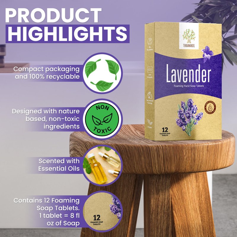 Terramandi Foaming Hand Soap Tablets 12 count Refill - Makes 96 fl oz of foaming hand soap (12x 8 fl oz bottles of soap) (Lavender)