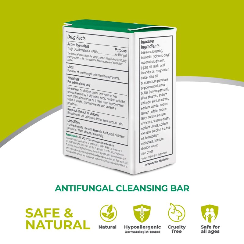 - DERMATOLOGIST TESTED, NATURAL, & SAFE: Terrasil Antifungal Soap Bar provides additional therapeutic benefits with natural ingredients. Terrasil is free of parabens, alcohols, dyes, fragrances and steroids. Dermatologist tested & Hypoallergenic approved, for even the most sensitive skin.