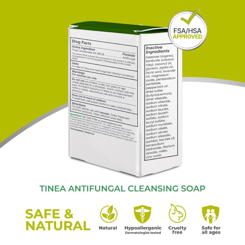 - TINEA ANTIFUNGAL SOAP: Ideal for relieving Tinea symptoms, Terrasil Tinea Cleansing Soap helps provide soothing care and relief for itchy, burning, peeling, cracked, scaly skin. Effective for Tinea versicolor, Tinea corporis, Tinea cruris, and Tinea pedis. For men and women and for all skin types.