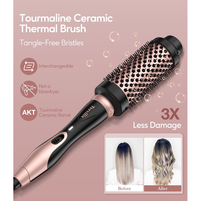 - Create a Voluminous Hairstyle - The Terviiix 3 In 1 heated round brush with a ceramic barrel evenly distributes heat to create long-lasting loose curls and waves. It's designed to provide great volume and achieve a blowout look, making it perfect for creating stunning curls.