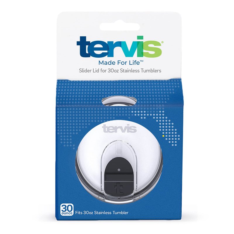 Tervis Slider Lid Made in USA Double Walled Insulated Tumbler Travel Cup Keeps Drinks Cold & Hot, For 30oz Stainless Steel, Clear