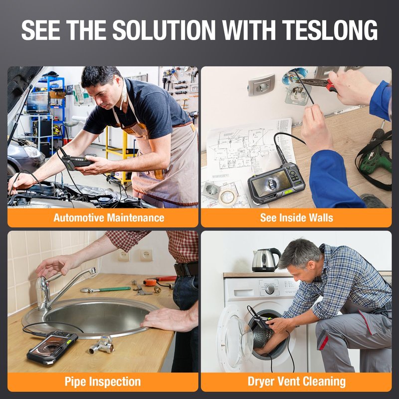 NOTE: This product listing is only for the camera and cable, it cannot be used alone and must accompany a NTS300, NTS450A or NTS500 monitors. These accessories set are Included in the original product package. If you’ve already ordered the original Teslong Borescope. Don't order again, beacuse these parts are only intended for replacing the original damaged kits.) This endoscope camera cable can be used for mechanical inspection, car repair, plumbing fixes, electrical installs, house DIY, wall upgrades, chimney cleaning, air conditioning maintenance, and more. Requires pairing with MTS300, NTS450A or NTS500 monitors