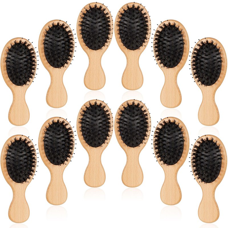 Features: Ideal gift: If you are looking for a practical gift for your loved ones who are beauty enthusiasts or hair lovers, these portable hair brushes make for an ideal gift option. Packed with sufficient quantity and quality materials, and designed for convenience and comfort, they are sure to impress anyone who appreciates good hair care and styling tools. Treat your friends, family, or even yourself to these mini brushes and watch their hair styling game level up. Reduce frizz: These curly hair styling brushes are easy to carry around, allowing you to have them on hand for quick touch ups and styling fixes wherever you are. Never again will you have to worry about hair disasters or untamed locks when you have these mini brushes at your disposal. Specifications: Material: beech, boar bristleColor: as shown in the pictureSize: about 5.51 x 2.36 inches/ 14 x 6 cmPackage includes: 12 x Mini hairbrushesNotes: Manual measurement, please allow slight errors on size. The color may exist a slight difference due to different screen displays.