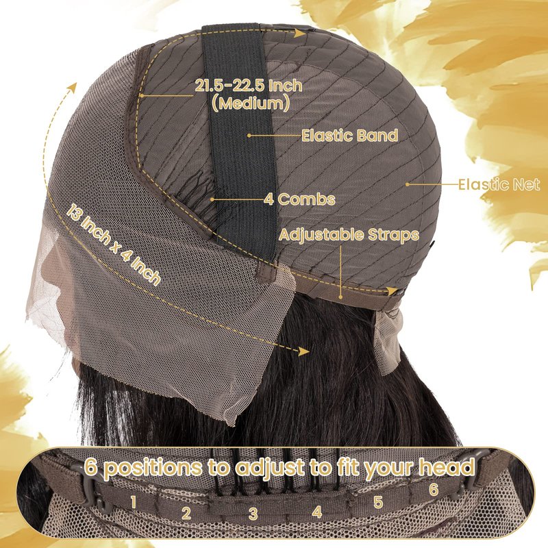 - 【EXCELLENT MATCH】 13x4 Body wave HD lace front wigs human hair, hair cap is medium size (21.5" - 22.5"). Comes with 4 combs to secure hair and 6 levels of adjustable straps to fit most head shapes.