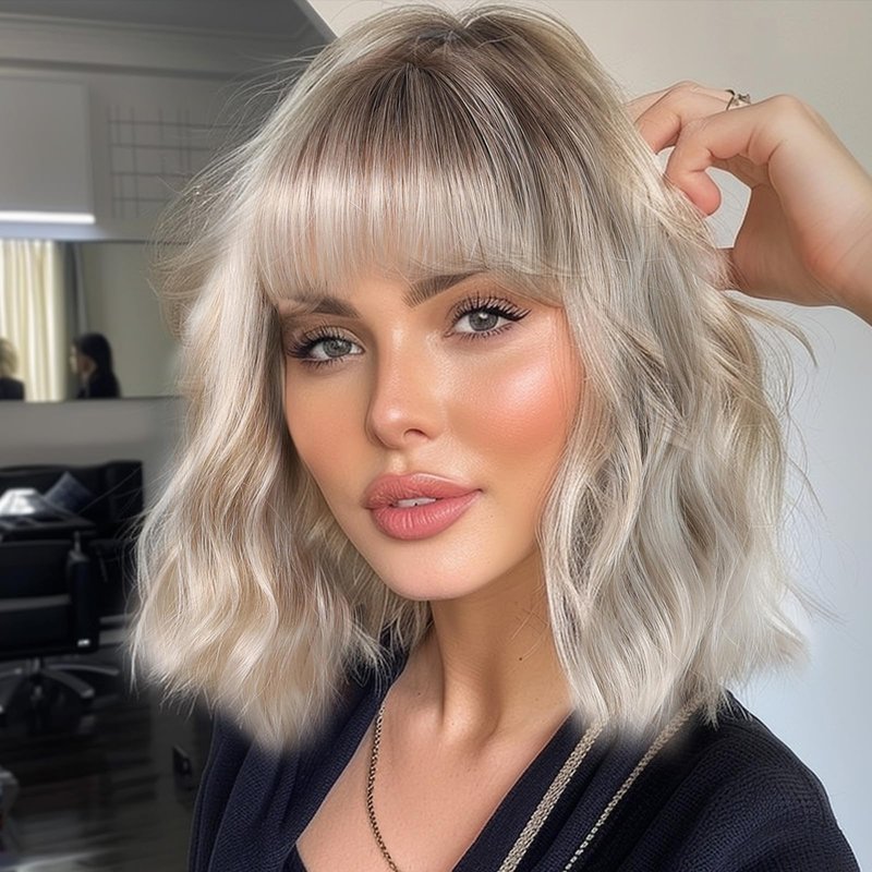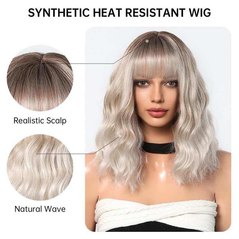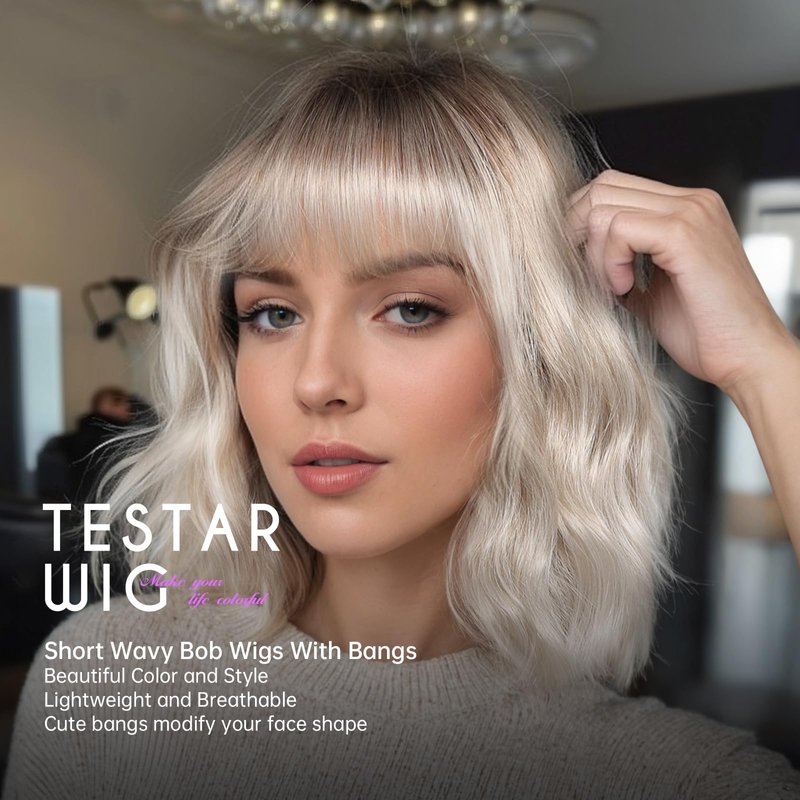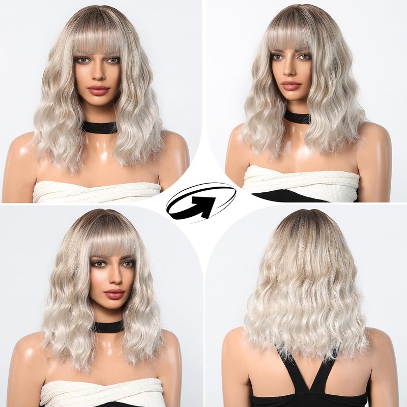 - 【Popular Wig】 The sexy gray bob wigs have always been popular among women of all skin tones because short blonde bob wigs with bangs are convenient, simple, and look natural, perfect for cosplay, christmas, masquerade, easter, anime party, halloween, daily use and any theme parties.