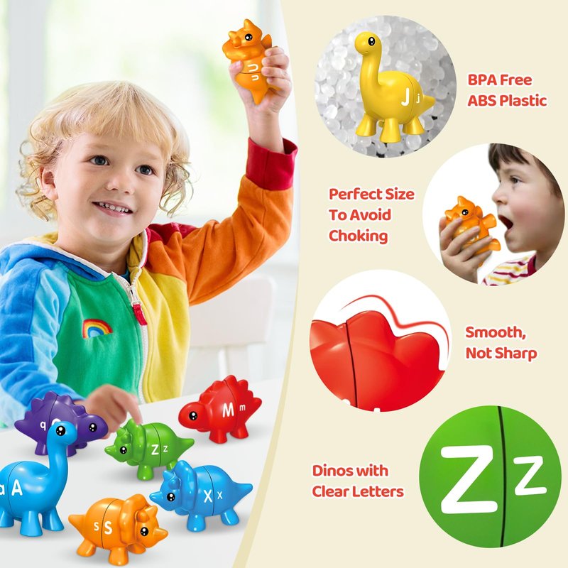 - Perfect Gift Idea: Beautifully packaged and adorably designed, this alphabet matching dinosaur toy makes an excellent gift for birthdays, Thanksgiving, Christmas, or New Year celebrations. It supports fine motor skill enhancement and cognitive development while children play.