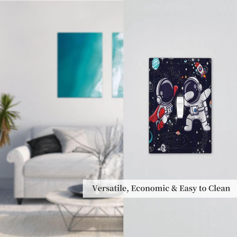 Tewujay Decorative Light Switch Covers Cartoon Cute Astronauts Galaxy Planets 1 Toggle Single Toggle Wall Plate Decorative Switchcover Electrical Switchplate for Farmhouse Home Decor
