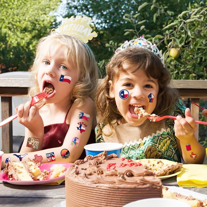 - Perfect Texas State Map Flag Pride Retro USA Birthday Decorations: All the temporary tattoos are design with many themed. Fits any smooth part: face, hands, arms, shoulders, back, legs water bottle, cup,mug and other stuff and so on. Great fun for party favors, birthday gift, clubs, festivals or party supplies,etc. and can be used by children, kids, girls, boys, women, men.