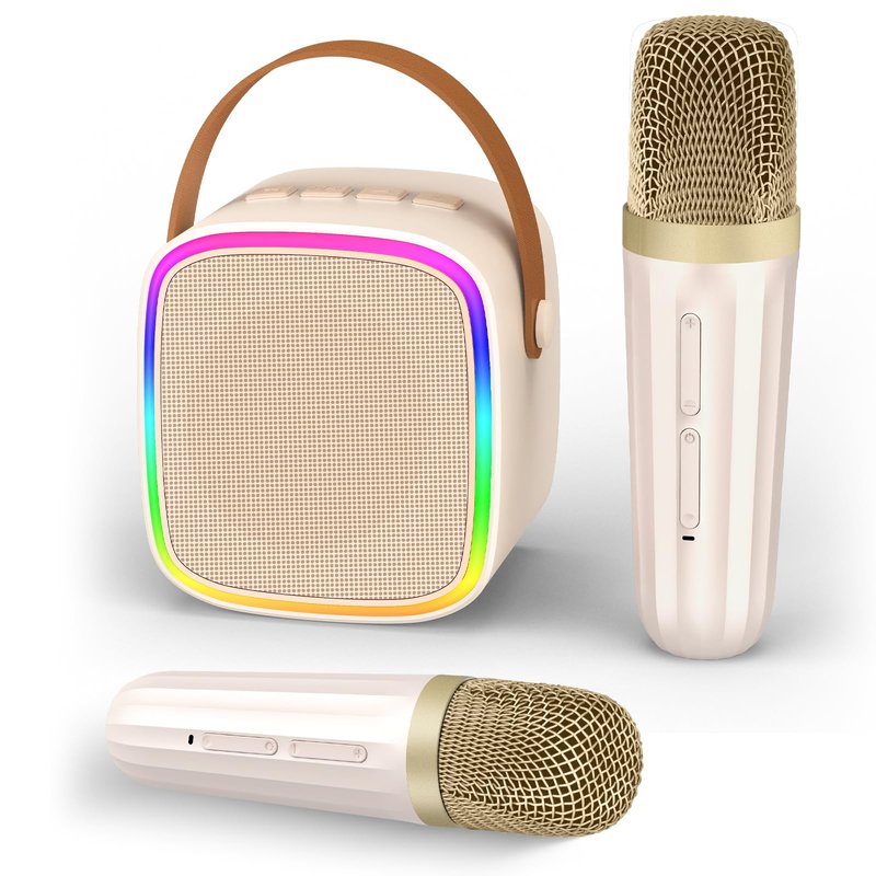Texpot Mini Karaoke Machine with 2 Wireless Microphones, Kids Toys Portable Bluetooth Speaker for Kids Adults Toddler, Christmas Girls Toys for 4 5 6 7 8 9 10 12 Year Old Birthday Gift Ideas(Beige)