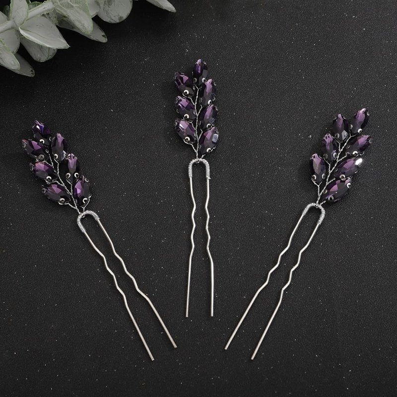 Teyglen 3pcs Crystal Bridal Hair Pins Rhinestone Hair Pieces Bride Wedding Hair Accessories Vintage Blue Red Purple Rhinestone Hair Pins for Women Girls Party Prom (Purple)