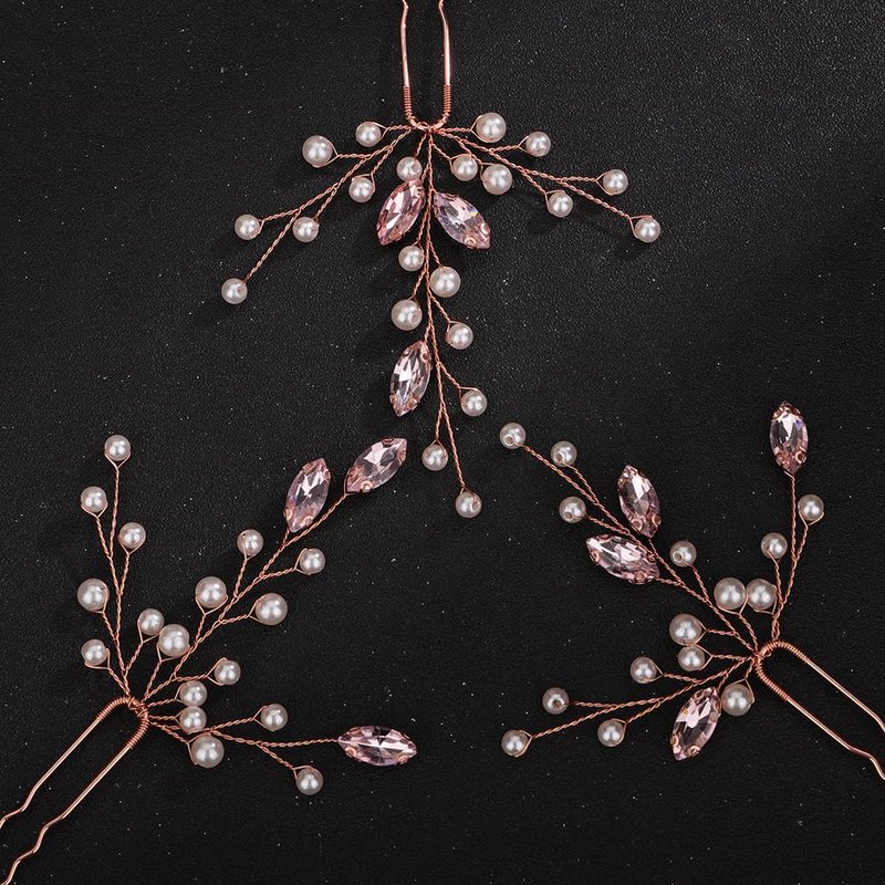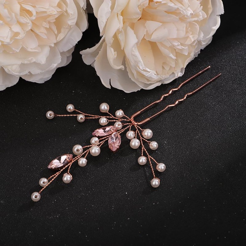 - Handmade Pink Pearl Crystal Wedding Hair Pins Set.