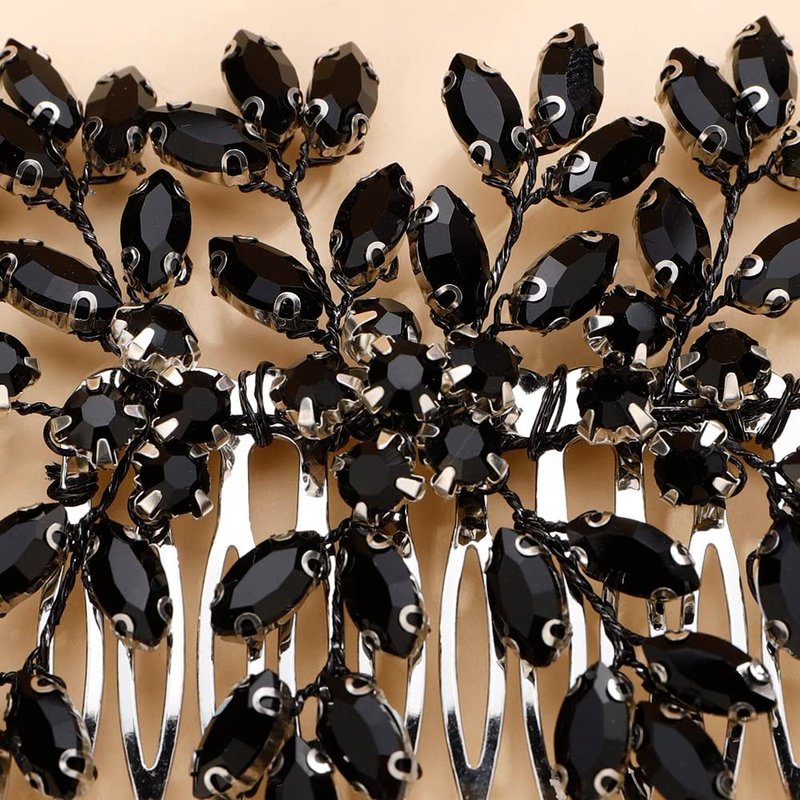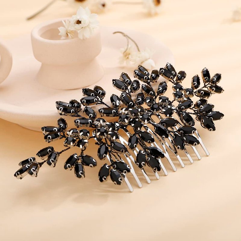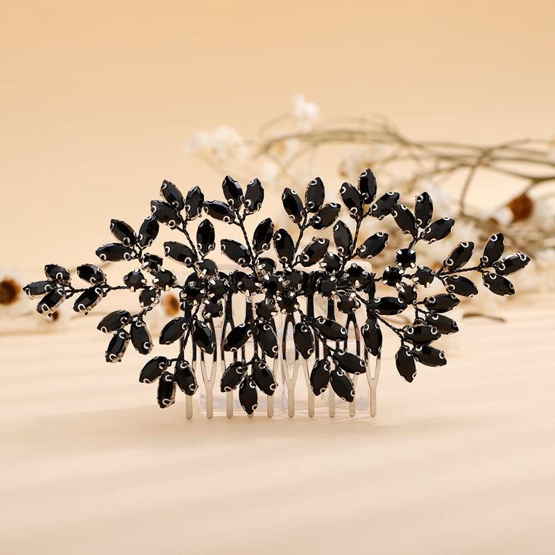 Teyglen Black Rhinestone Wedding Hair Comb Bridal Black Crystal Hair Comb Wedding Hair Accessories for Bride Black Rhinestone Headpiece Hair Piece for Women Girls(Black)