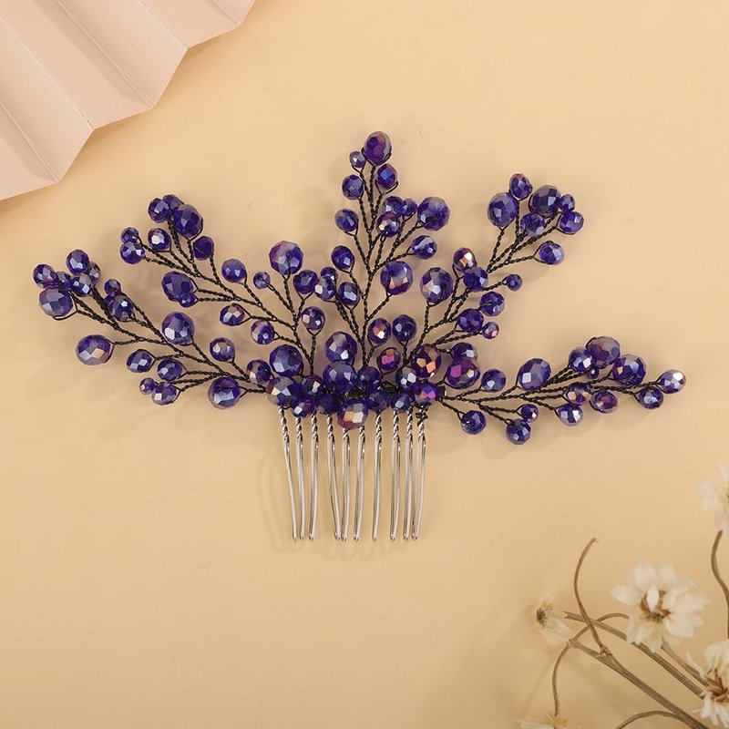 - Sparkly blue crystal beads hair comb for women party prom wedding and evening,exquisite and unique design,will add more charm for your outfit.