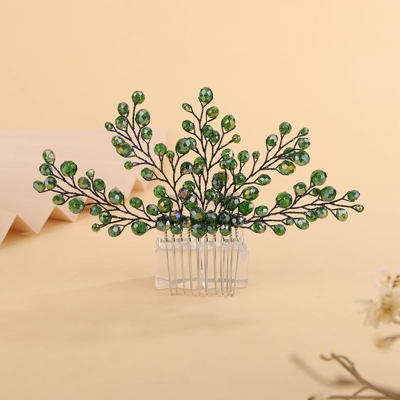 - Sparkly green crystal beads hair comb for women party prom wedding and evening,exquisite and unique design,will add more charm for your outfit.