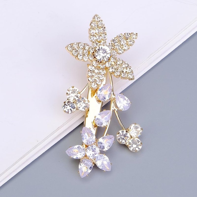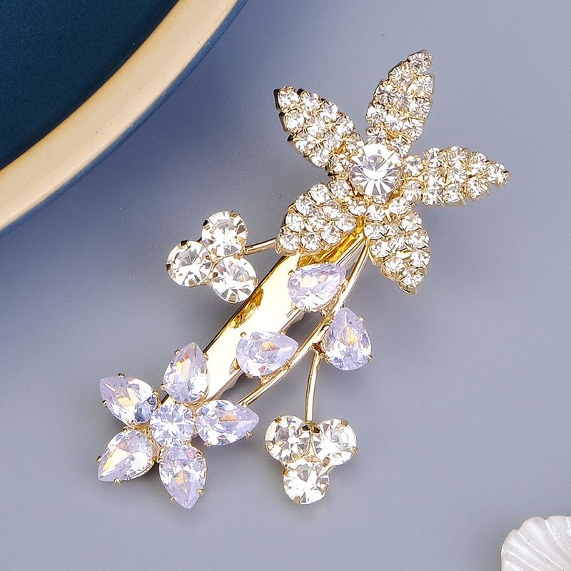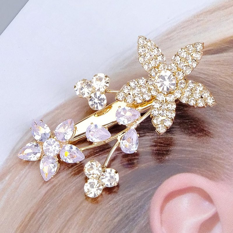 - Delicate gold rhinestone crystal flower hair clip barrette for women party prom wedding and evening,exquisite and unique design,will add more charm for your outfit.