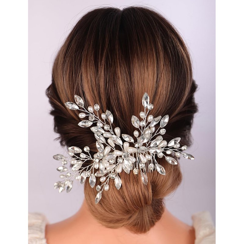 Teyglen Bridal Rhinestone Wedding Hair Comb Silver Crystal Pearl Side Comb Bridal Hair Piece Wedding Hair Accessories for Women Girls