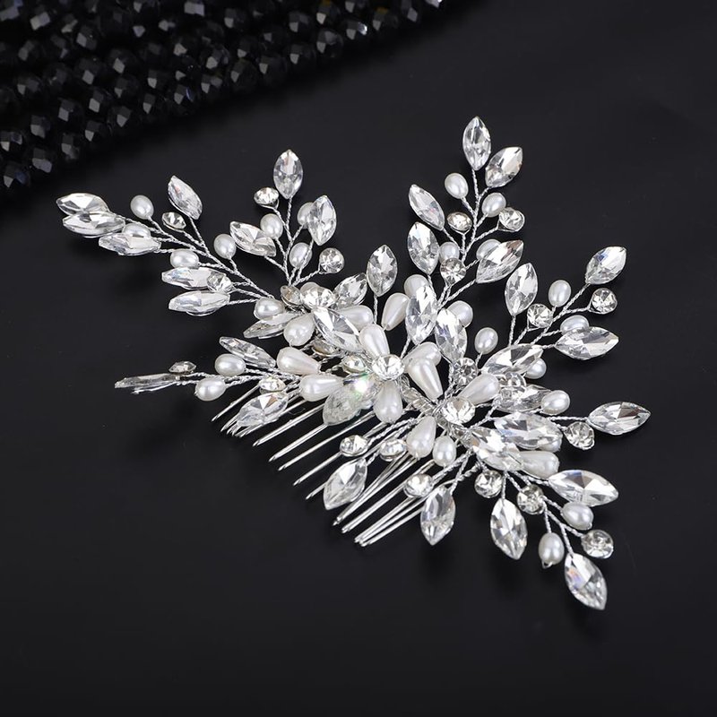 - Dalicate large crystal and pearl beads hair comb for women party prom wedding and evening,exquisite and unique design,will add more charm for your outfit.