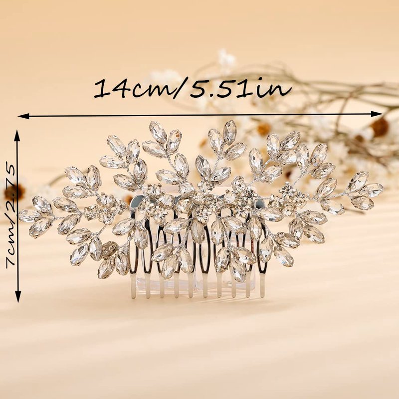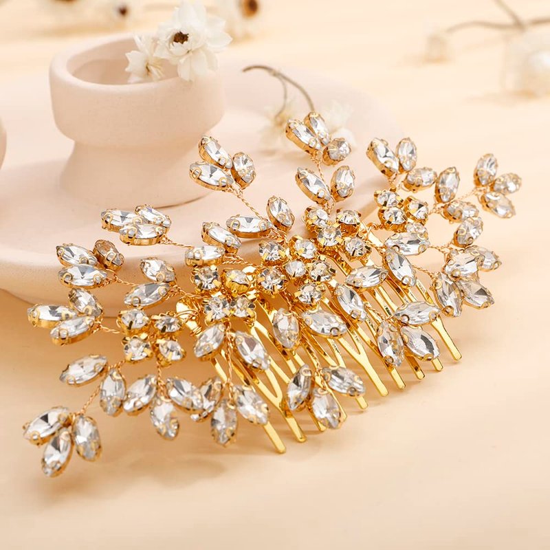 Teyglen Bridal Wedding Hair Combs Gold Full Rhinestones Crystal Side Hair Comb Flower Crystal Headpieces Bride Hair Accessories for Women Girls (Gold)