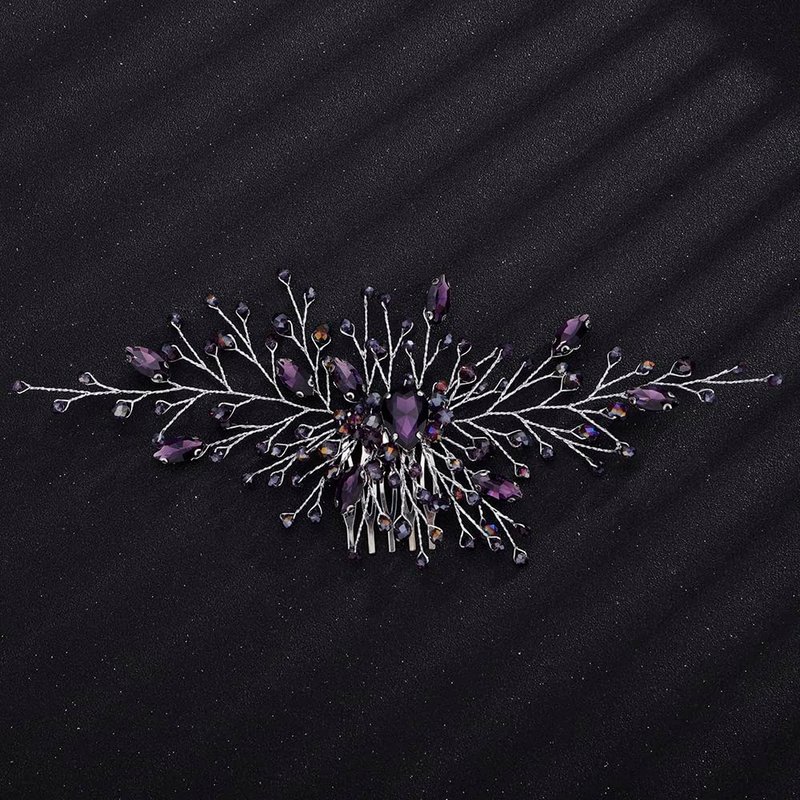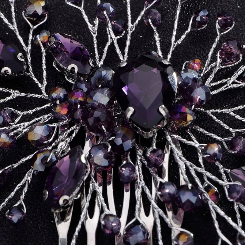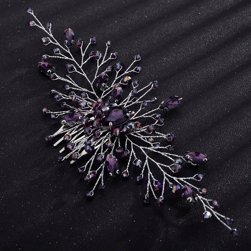 Teyglen Bridal Wedding Purple Dainty Hair Combs Purple Rhinestones Crystal Side Hair Comb Flower Crystal Bride Hair Accessories for Women and Girls (Silver Purple)