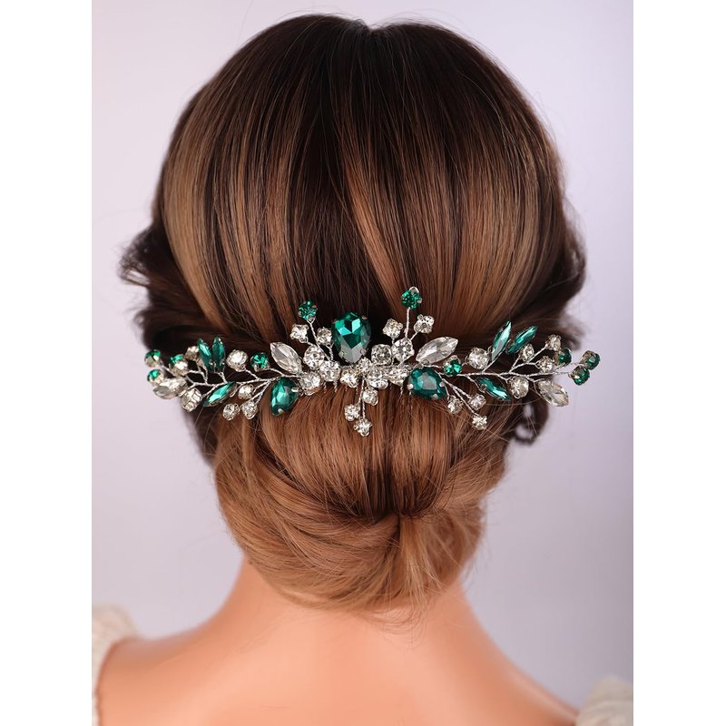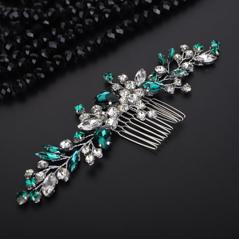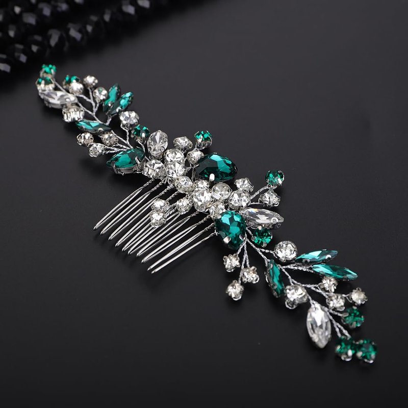 - Sparkly green rhinestone crystal hair comb for women party prom wedding and evening,exquisite and unique design,will add more charm for your outfit.