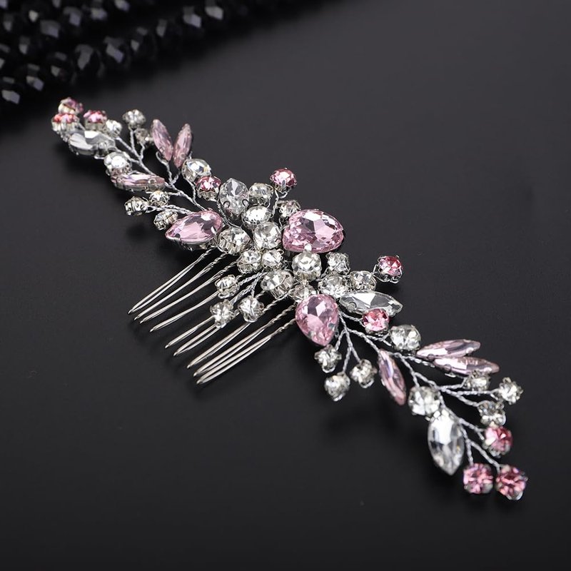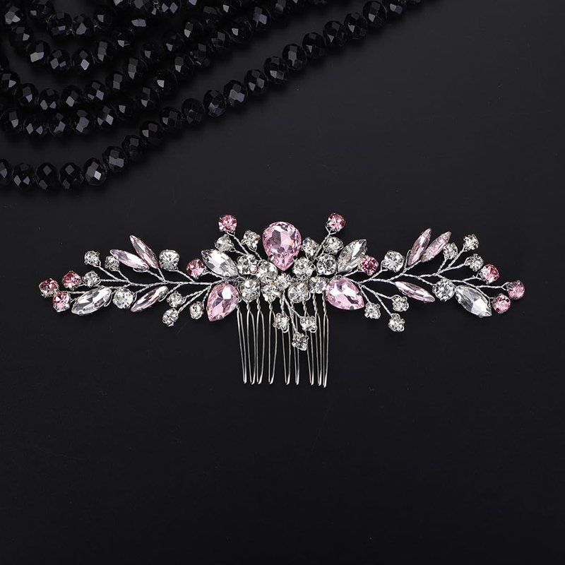 - Sparkly pink rhinestone crystal hair comb for women party prom wedding and evening,exquisite and unique design,will add more charm for your outfit.