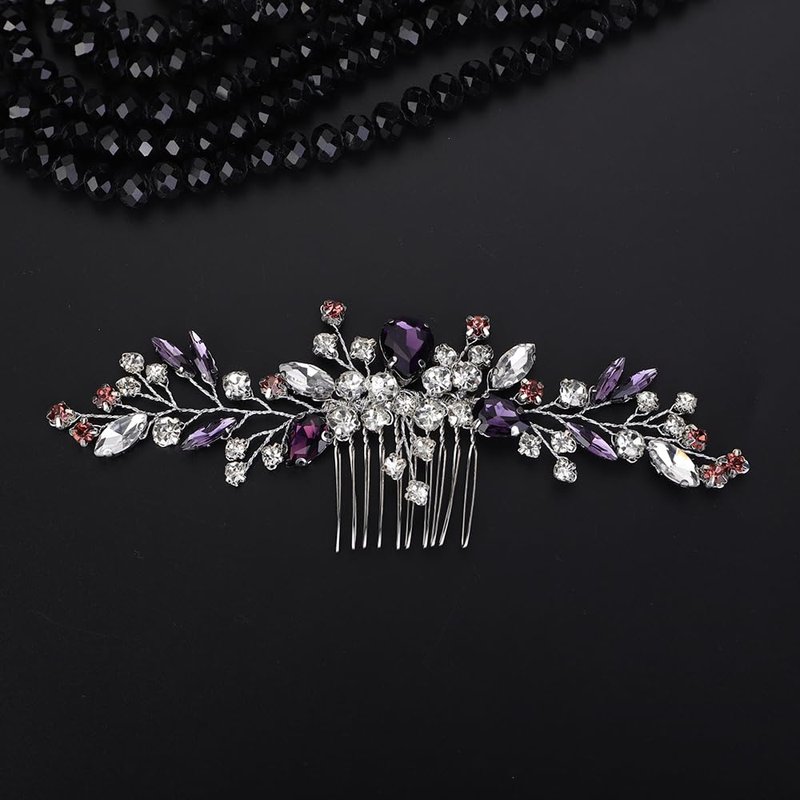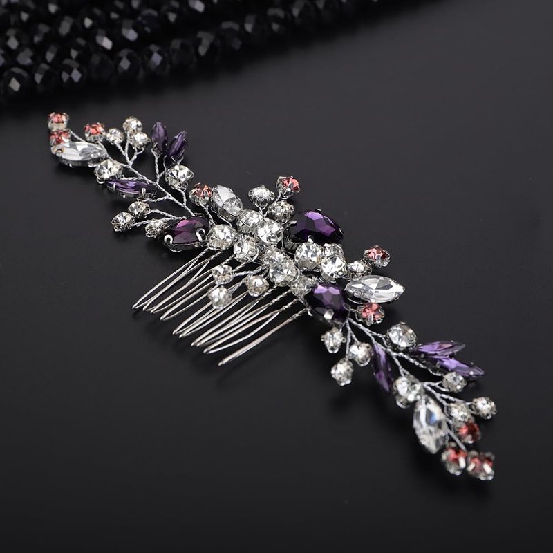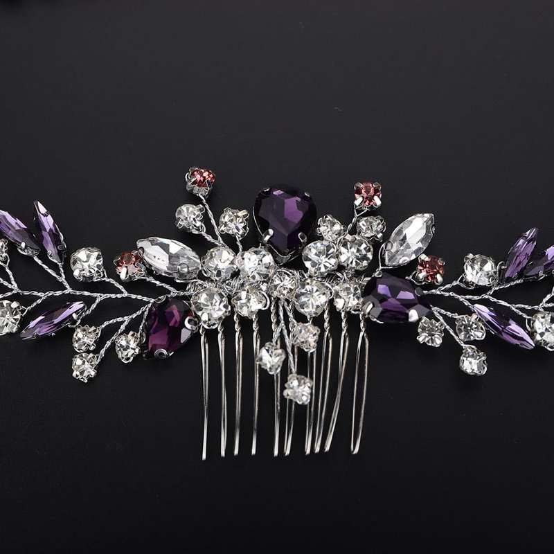 - Sparkly purple rhinestone crystal hair comb for women party prom wedding and evening,exquisite and unique design,will add more charm for your outfit.