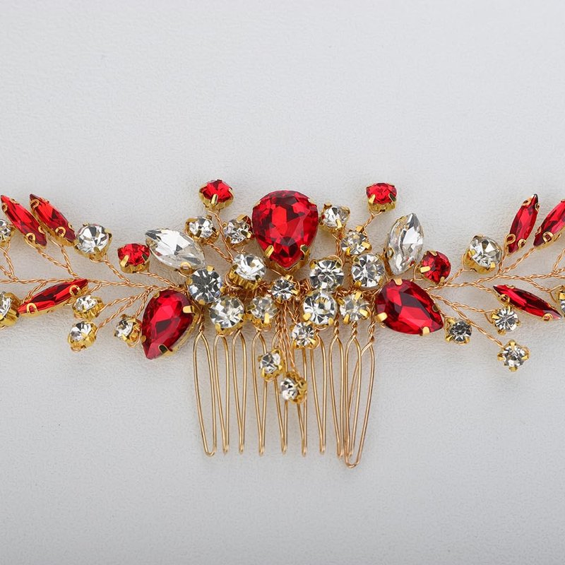 - Sparkly red rhinestone crystal hair comb for women party prom wedding and evening,exquisite and unique design,will add more charm for your outfit.