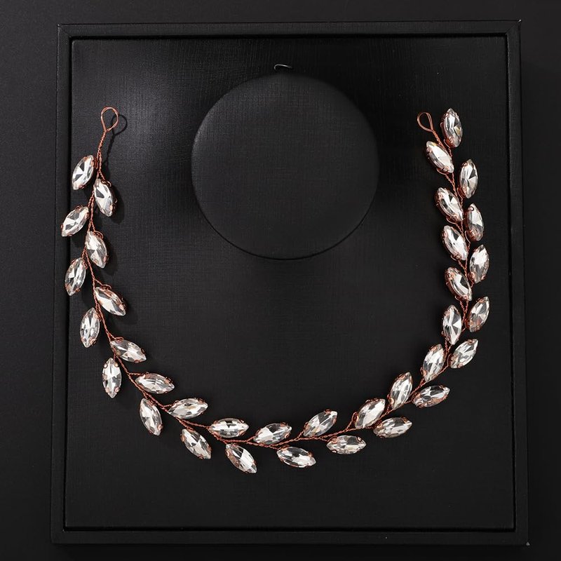 - Sparkly Full Rose Gold Crystal Rhinestone Headband Hair Vine.