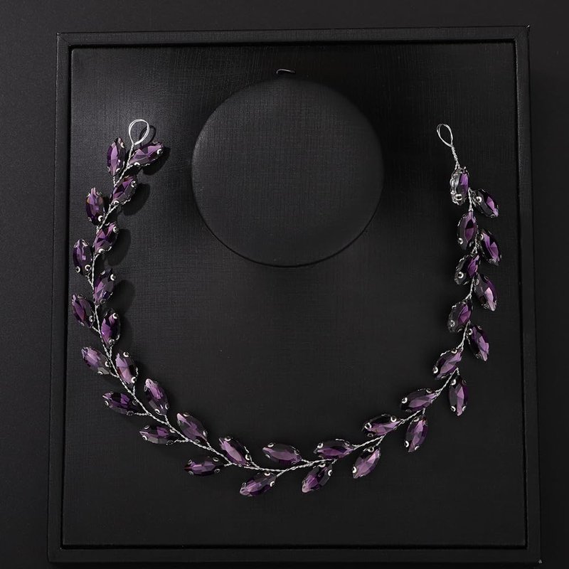 - Sparkly Full Purple Crystal Rhinestone Headband Hair Vine.