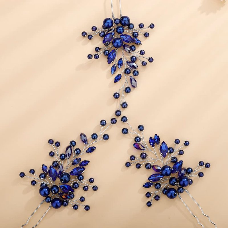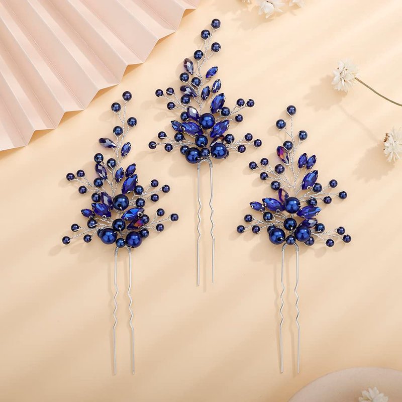 Teyglen Bride Wedding Crystal Pearls Hair Pins Vintage Blue Pearl Hair Pins Set Bridal Rhinestone Hair Pieces Headpieces Vintage Hair Accessories Jewelry Set for Women Girls (Blue)