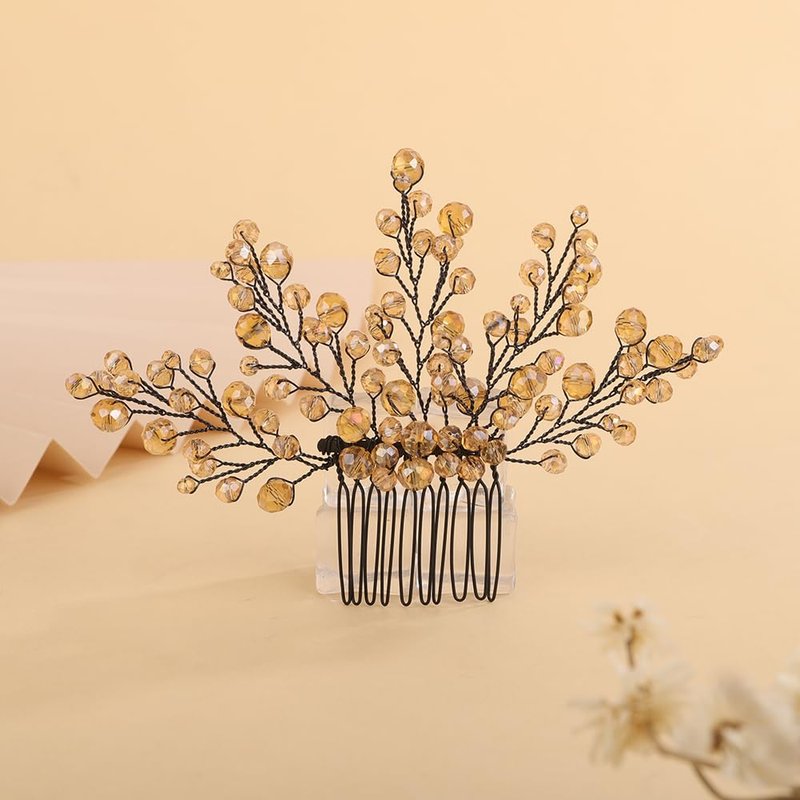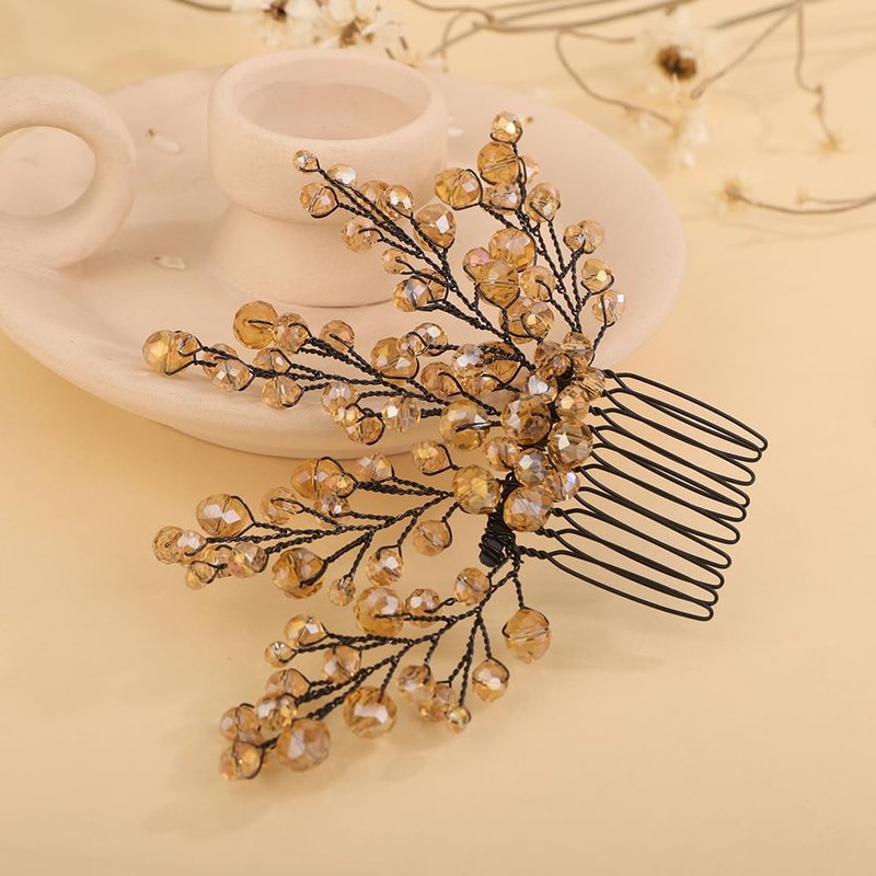 - Sparkly champagne crystal beads hair comb for women party prom wedding and evening,exquisite and unique design,will add more charm for your outfit.