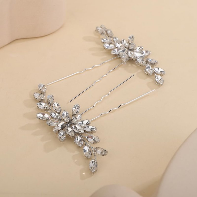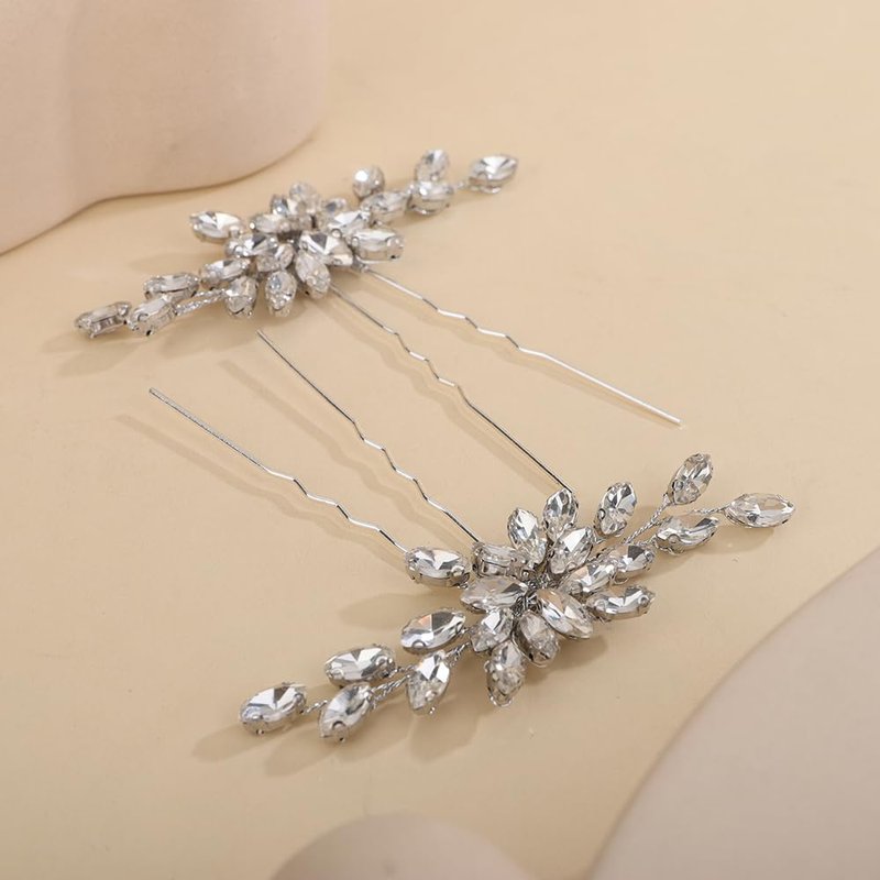 - Sparkly silver crystal rhinestone hair pins clips for women party prom wedding and evening,exquisite and unique design,will add more charm for your outfit.