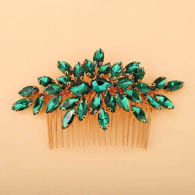 Teyglen Crystal Bride Wedding Hair Comb Full Rhinestone Side Comb Bridal Red Green Black Crystal Hair Pieces Hair Accessories for Bride Women Girl (Green)