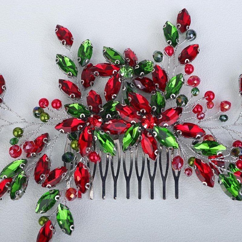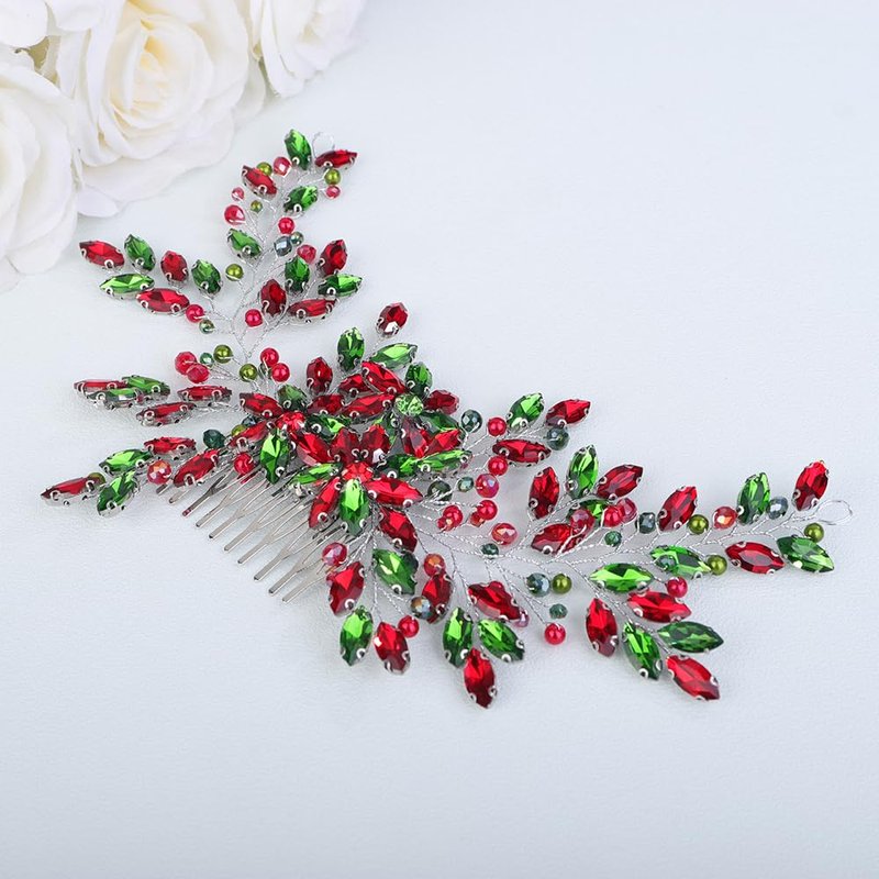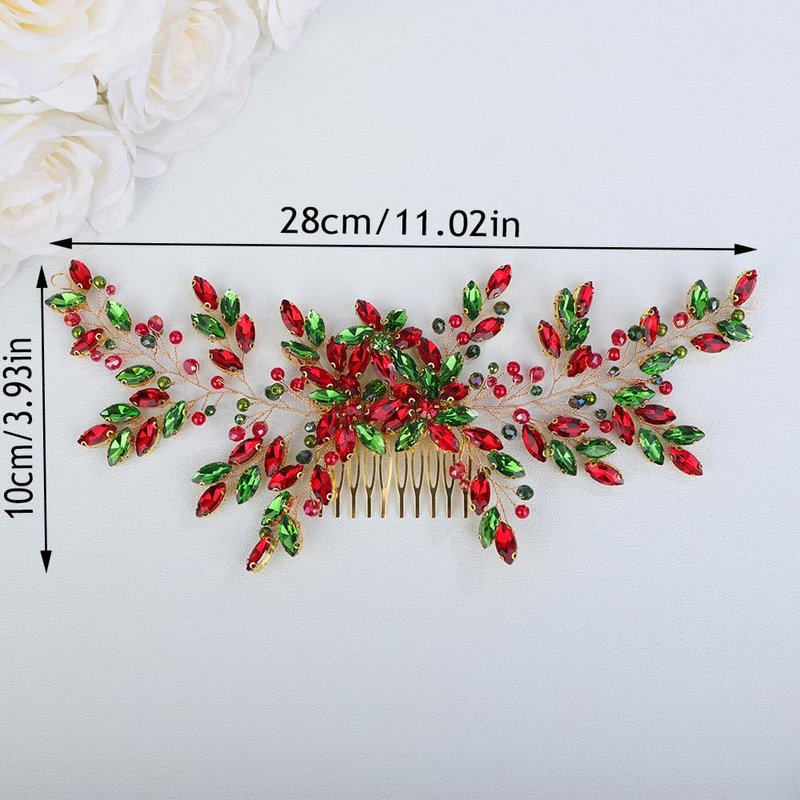- Delicate full red and green crystal rhinestone hair comb for women christmas party prom wedding and evening,exquisite and unique design,will add more charm for your outfit.