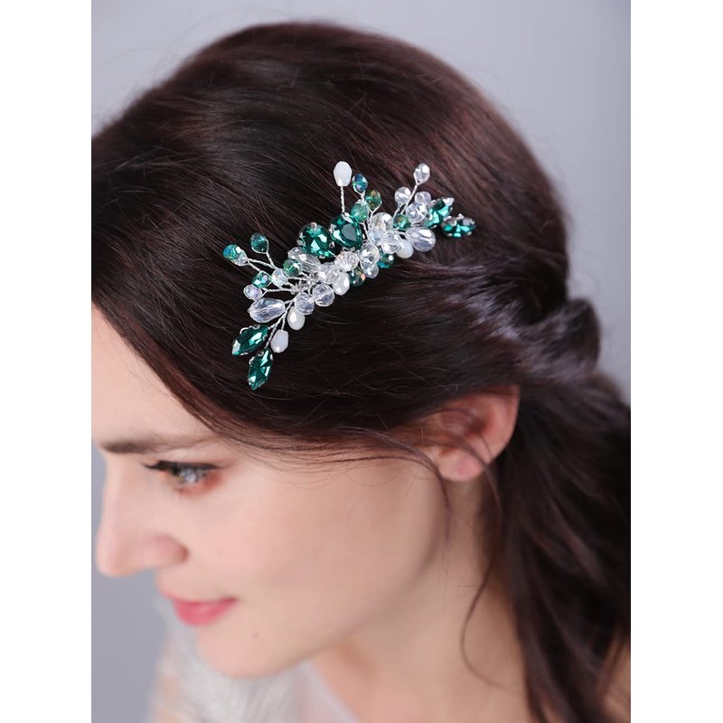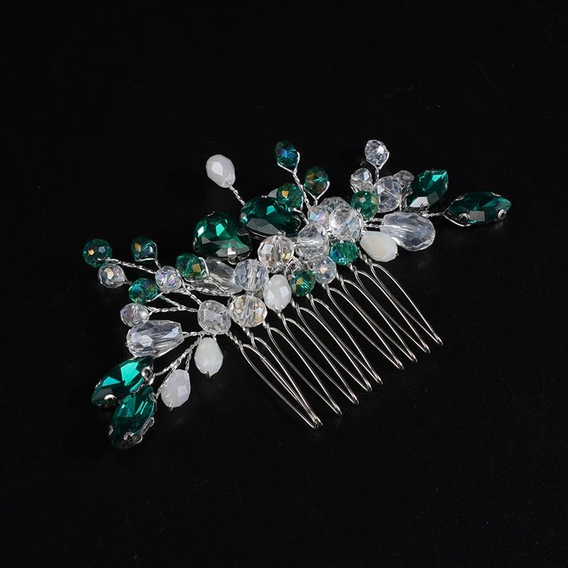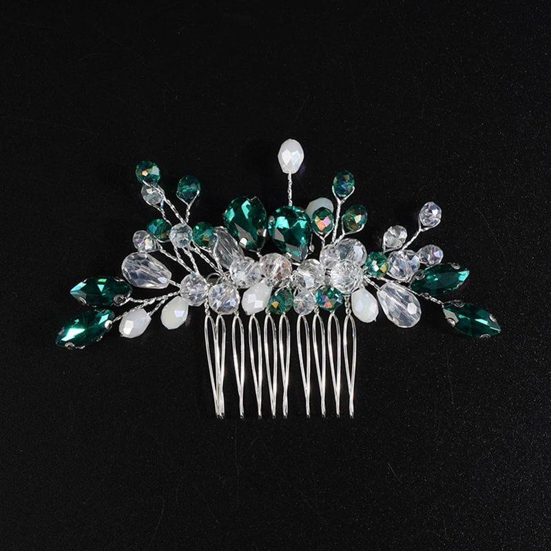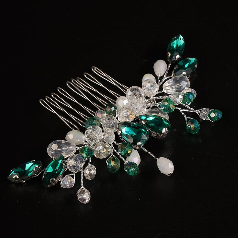 - Delicate green teardrop crystal rhinestone hair comb for women party prom wedding and evening,exquisite and unique design,will add more charm for your outfit.