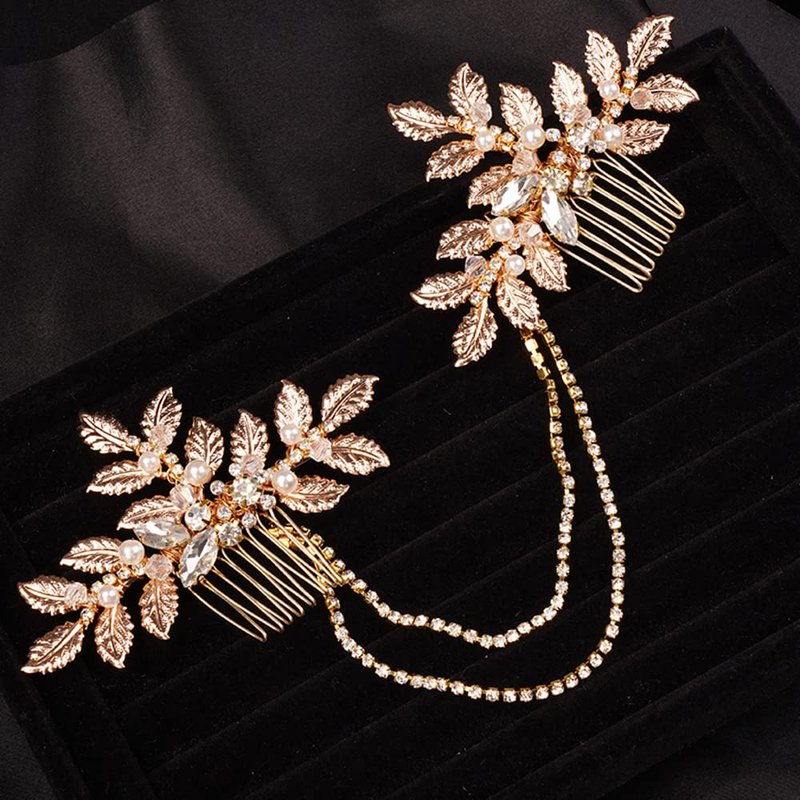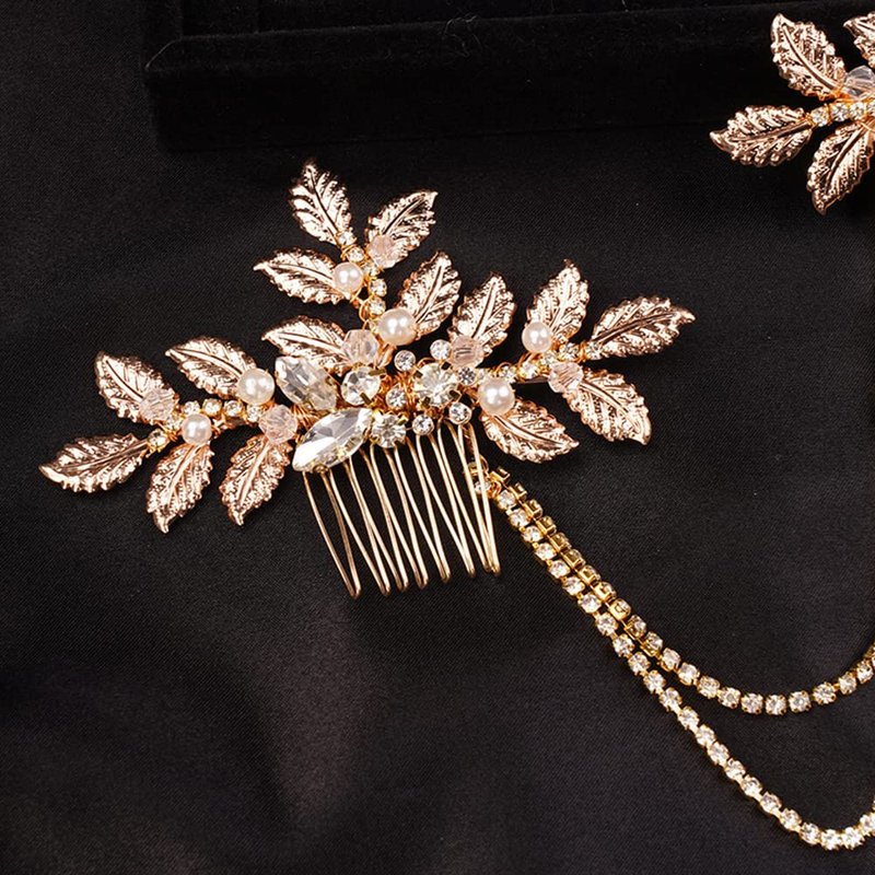 - Dainty Women Leaf Rhinestones Hair comb Headband
