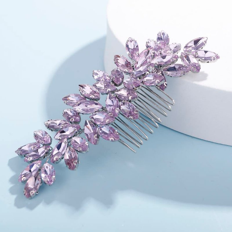 Teyglen Dainty Purple Rhinestone Hair Comb - Luxurious Shiny Bridal and Wedding Hair Accessory for Brides and Girls