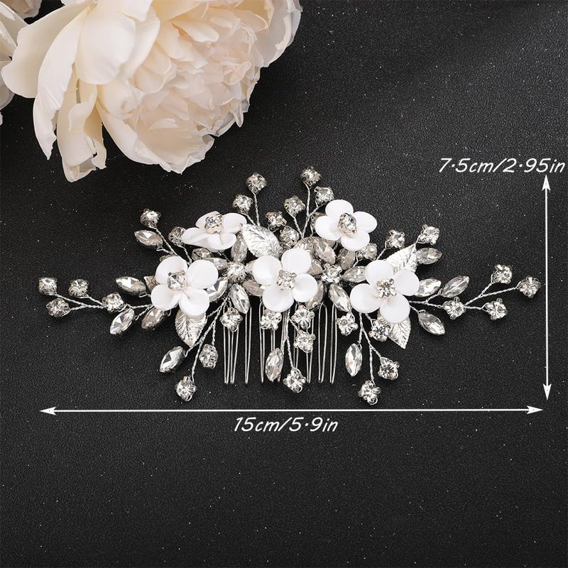 - Dainty Flower Leaf Rhinestones Crystal Hair comb.