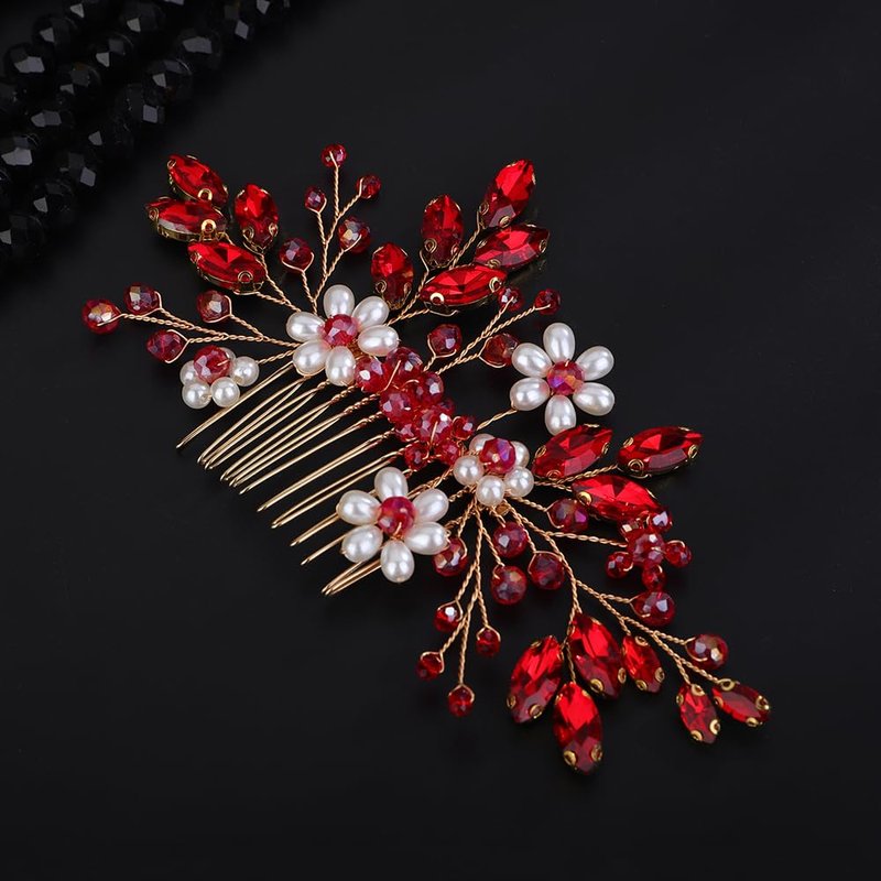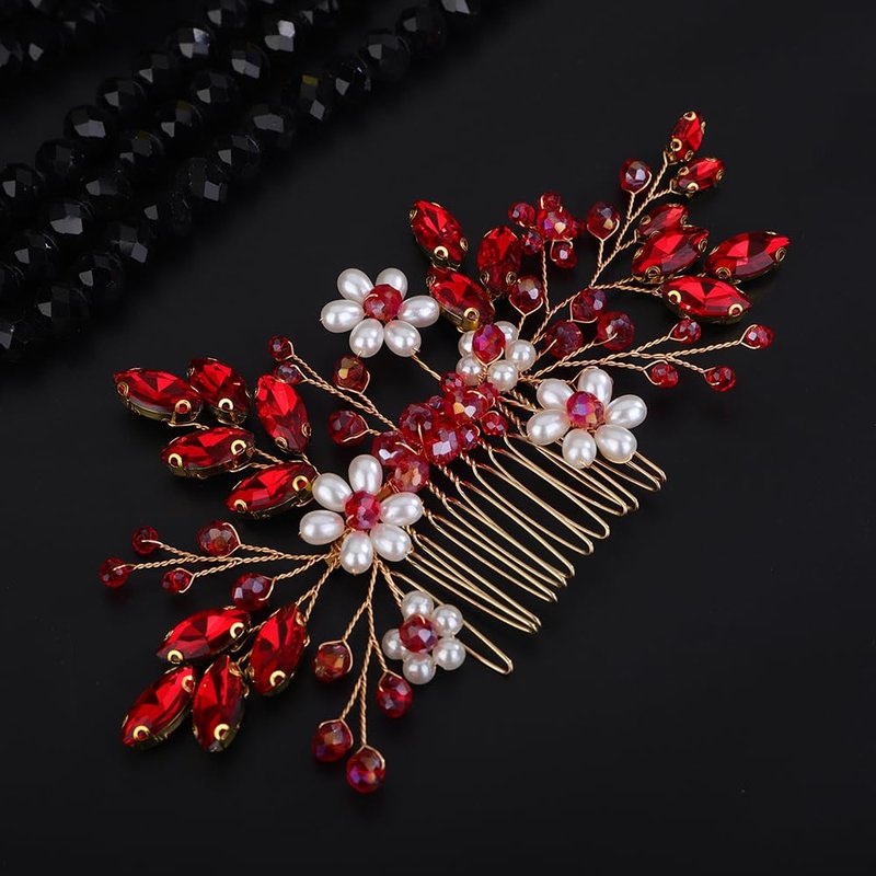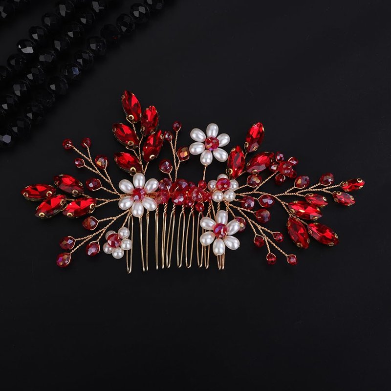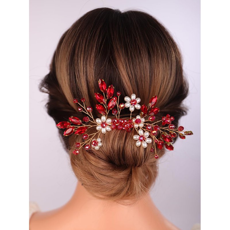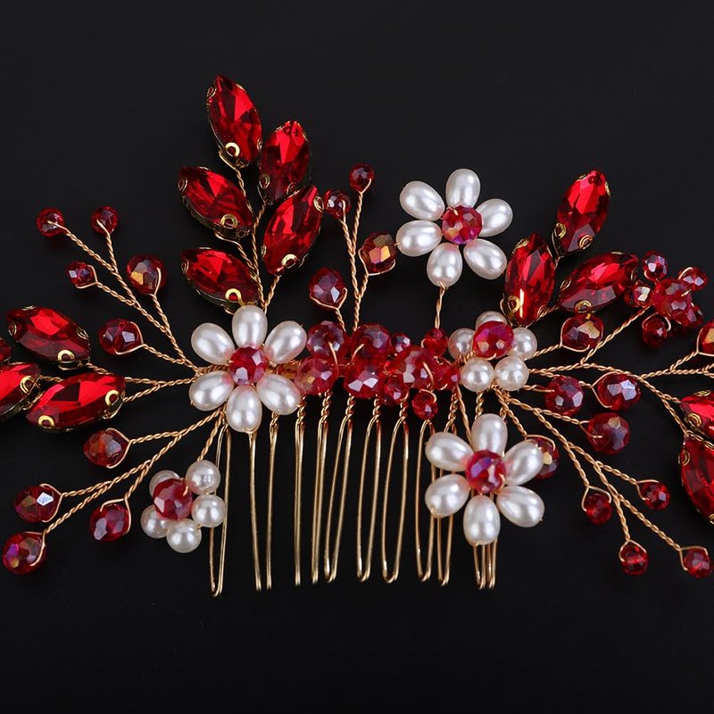- Delicate red crystal rhinestone hair comb with pearl flower for women party prom wedding and evening,exquisite and unique design,will add more charm for your outfit.