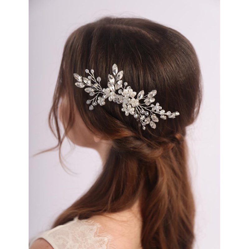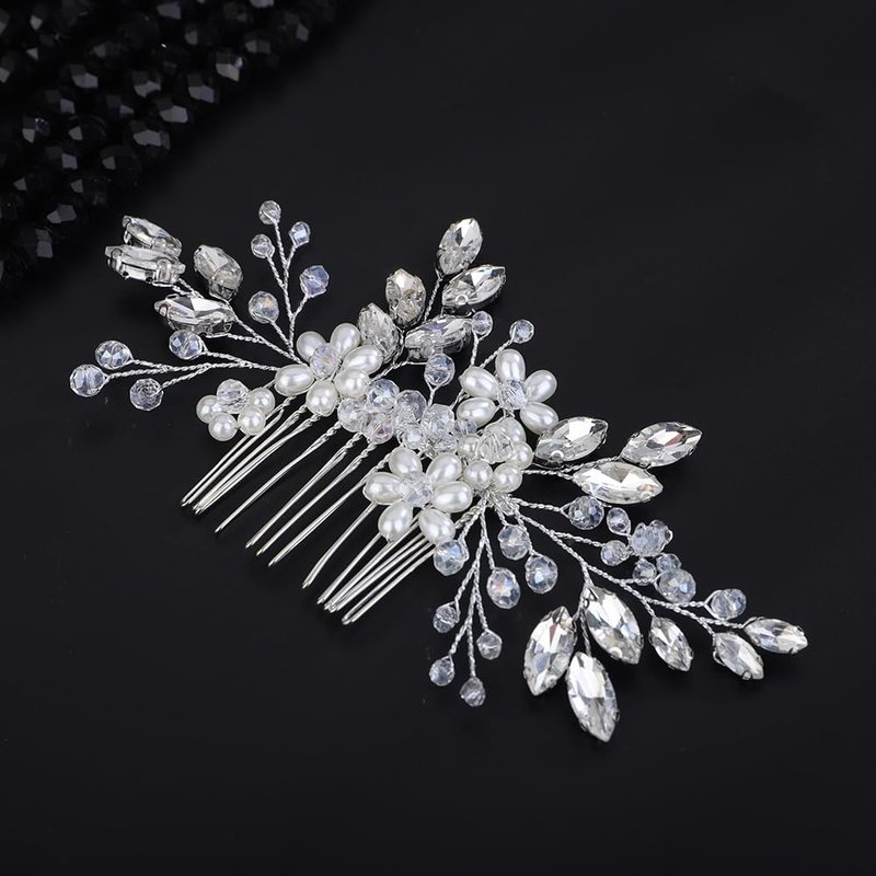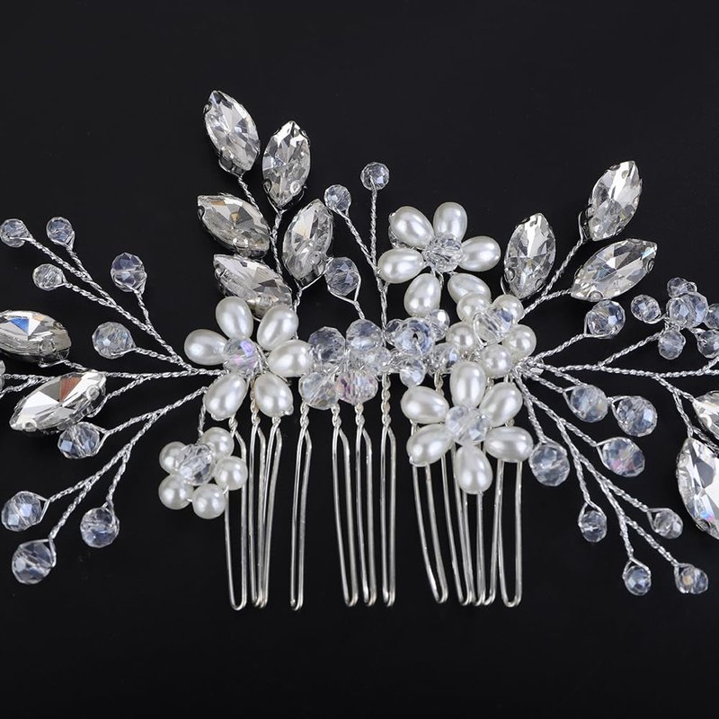 - Delicate silver crystal rhinestone hair comb with pearl flower for women party prom wedding and evening,exquisite and unique design,will add more charm for your outfit.