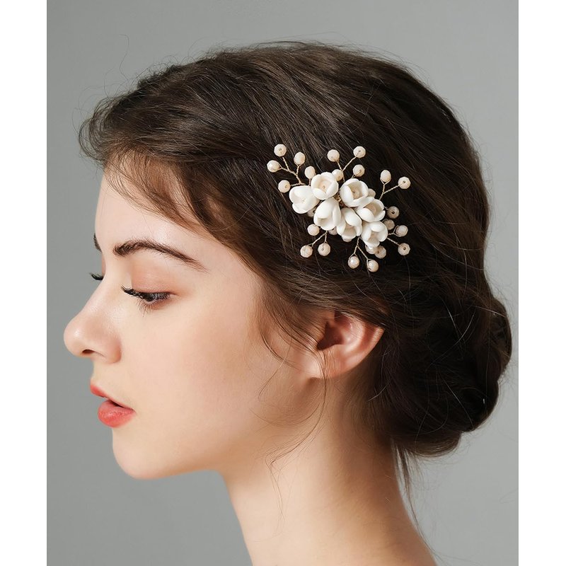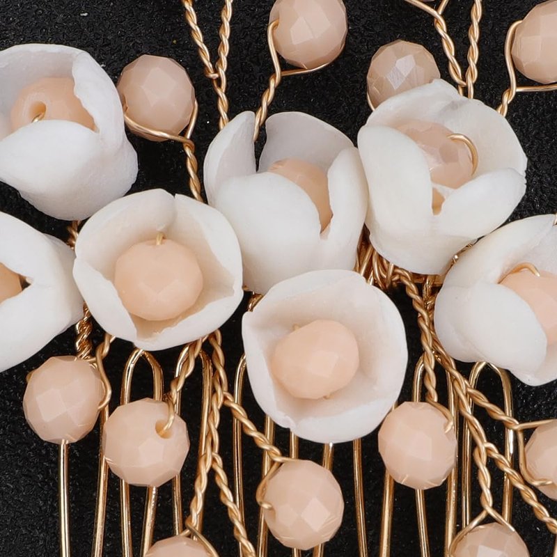 - Floral White Flower Flower Beads Hair Comb.
