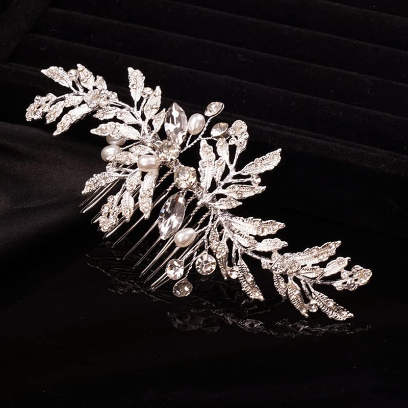 - Dainty Leaf Wedding Women Rhinestones Hair comb