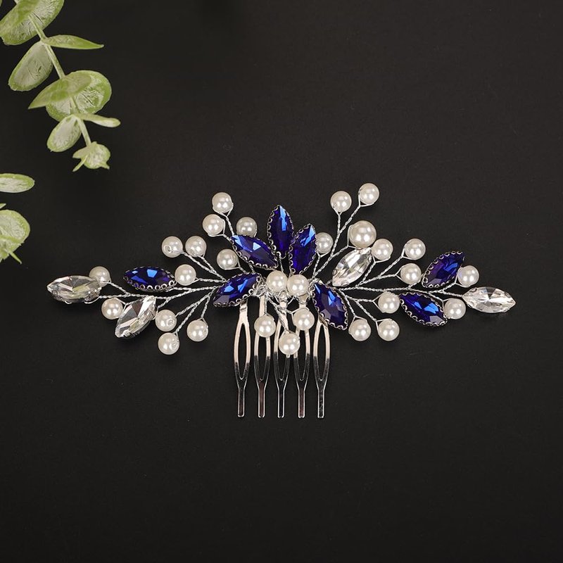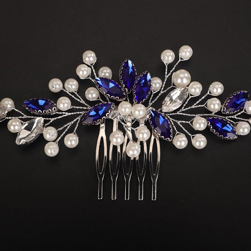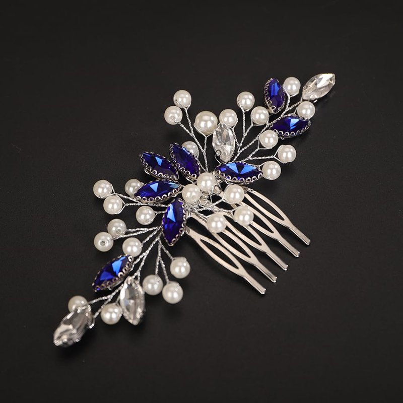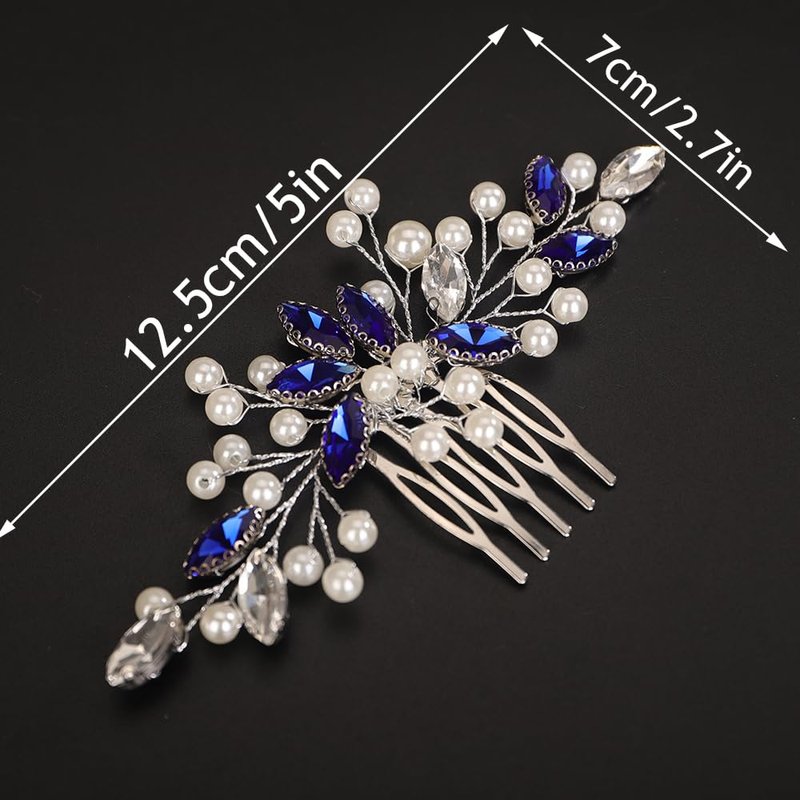 - Delicate blue crystal pearl beads hair comb for women party prom wedding and evening,exquisite and unique design,will add more charm for your outfit.