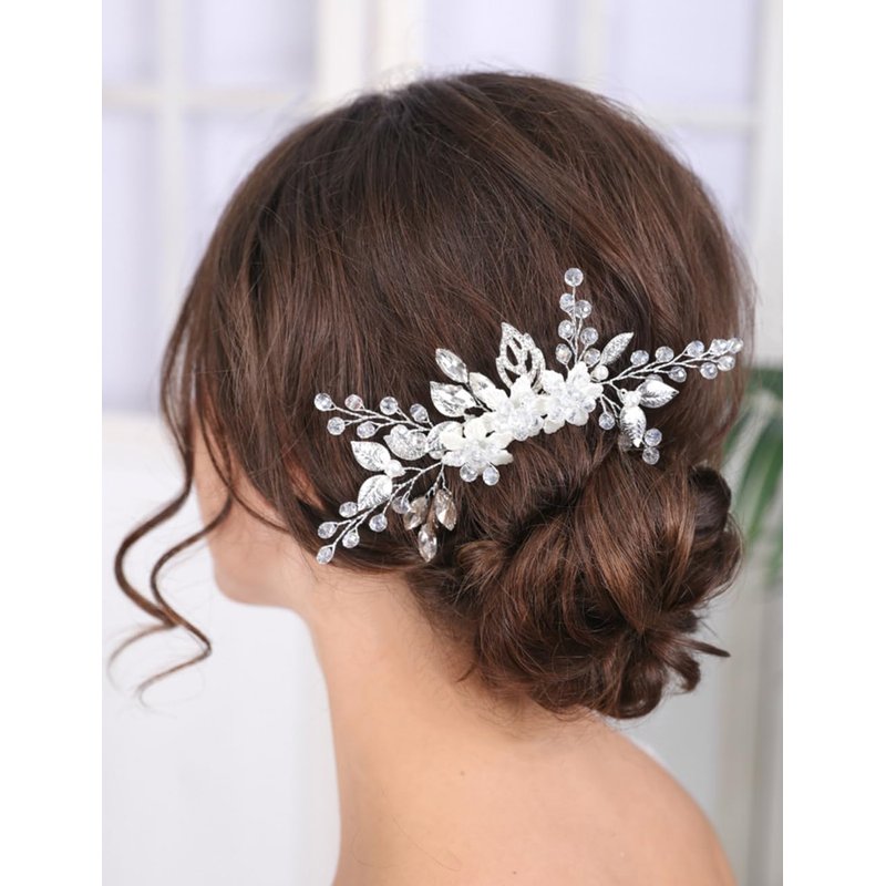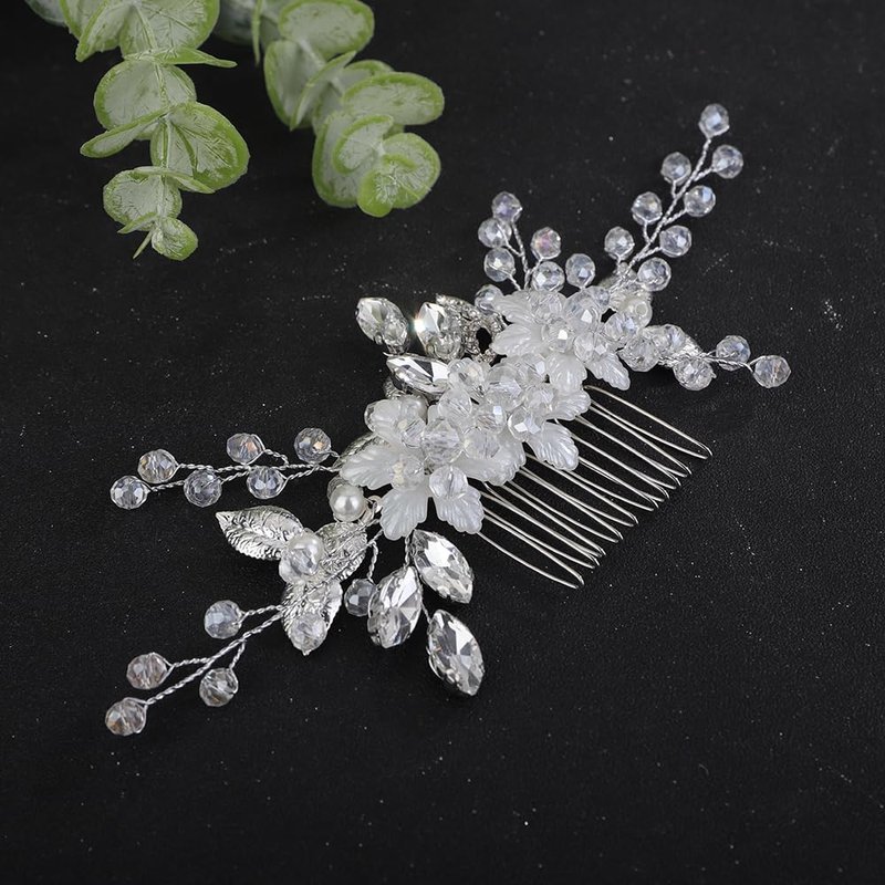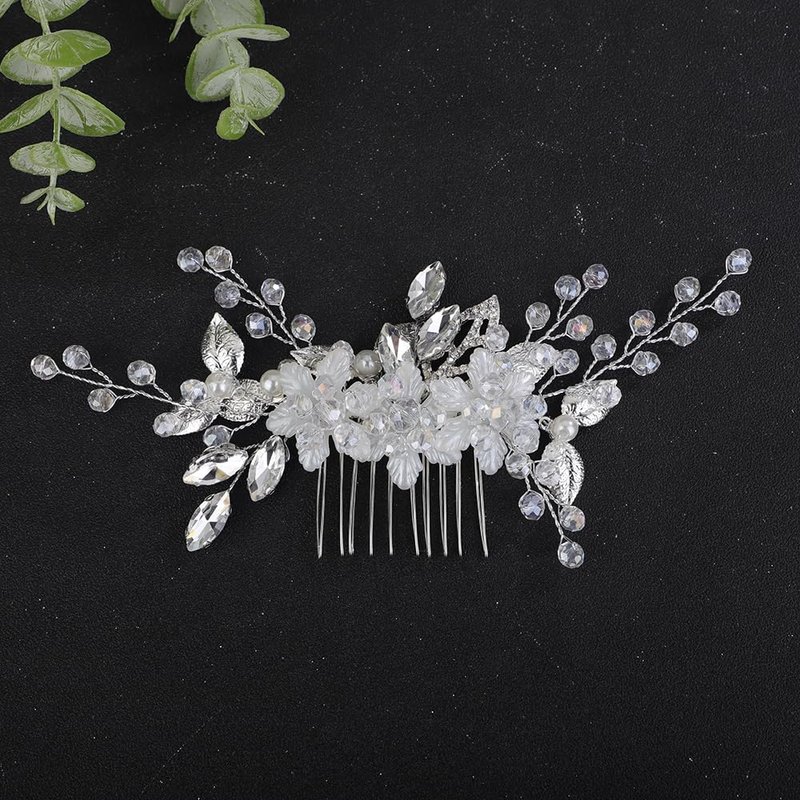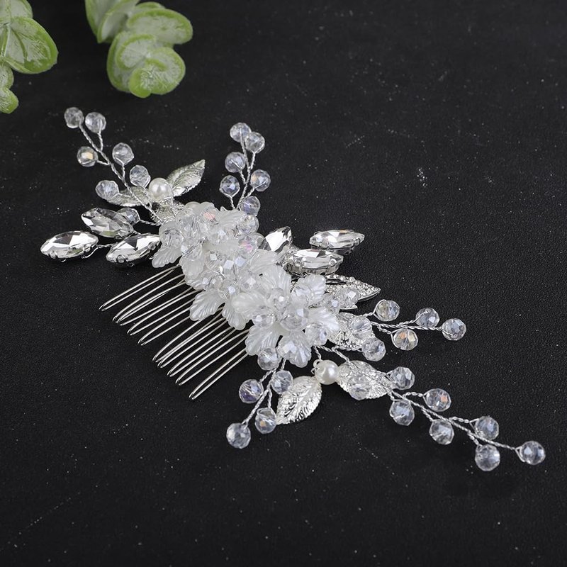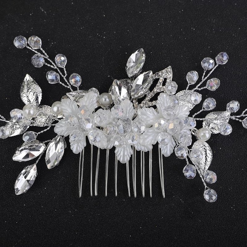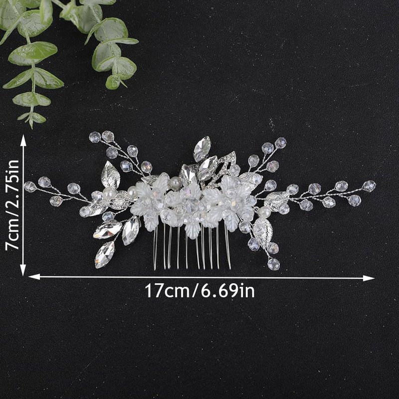 - Floral silver flower crystal rhinestone beads hair comb for women party prom wedding and evening,exquisite and unique design,will add more charm for your outfit.