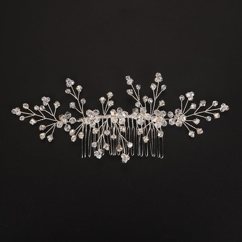 - Silver crystal rhinestone beads flower hair comb for women party prom wedding and evening,exquisite and unique design,will add more charm for your outfit.