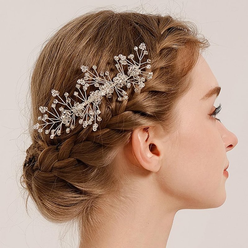 A beautiful hair accessory of brides and bridesmaids. Suitable for most hairstyles,such as:curly hair, thick hair, long hair or short hair. Please understand that there will be a small difference of 1-2cm in manual measurement. You can match different hairstyles, enough to meet your daily needs.
