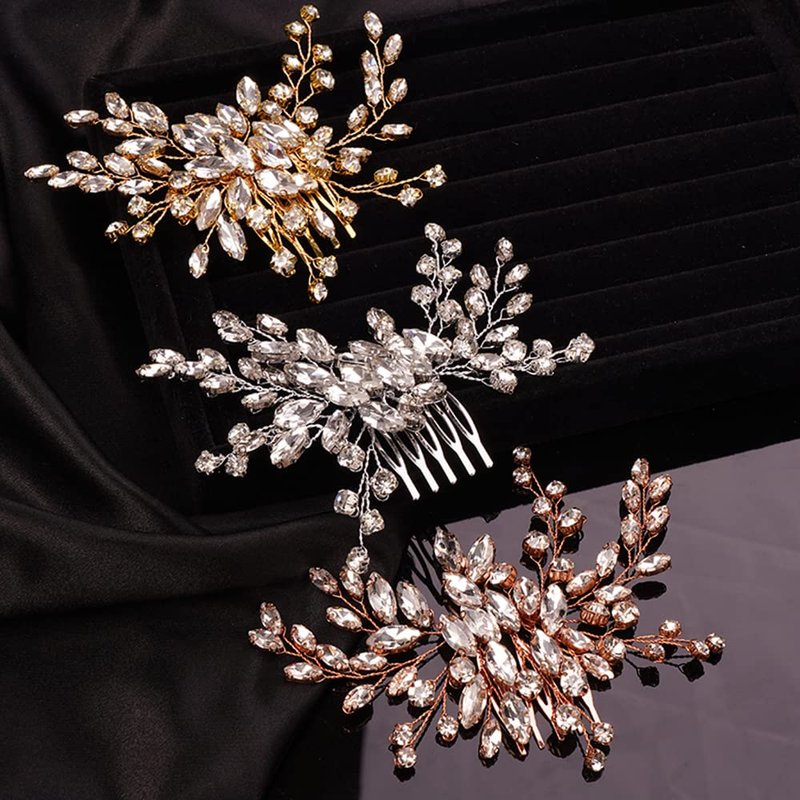 Teyglen Simple Full Rhinestones Bride Wedding Hair Comb Hair Pieces for Bride Bridal Crystal Side Hair Comb Hair Accessories for Women Girls (Gold)