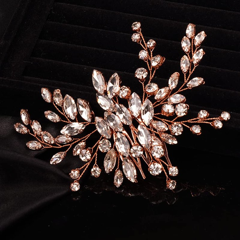 Teyglen Simple Full Rhinestones Bride Wedding Hair Comb Hair Pieces for Bride Bridal Crystal Side Hair Comb Hair Accessories for Women Girls (Rose gold)